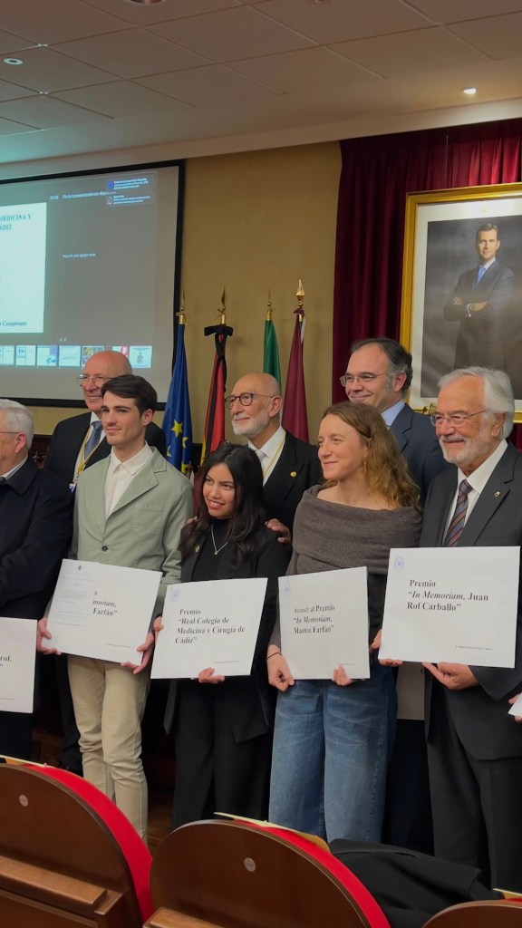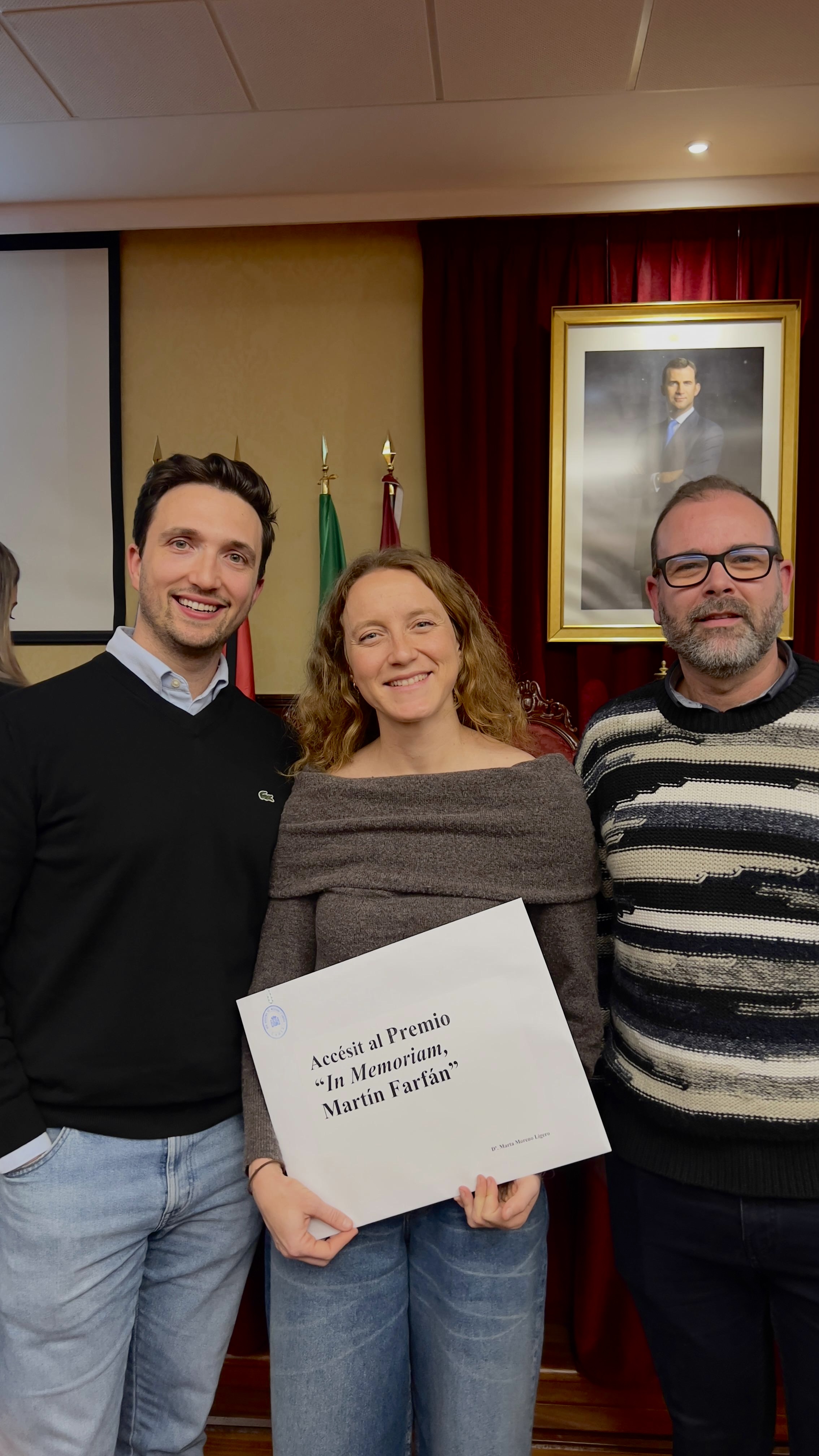 The award was presented on January 22 during the Solemn Opening Ceremony of the Academic Year 2026 of the Royal Academy of Medicine and Surgery, held at the Faculty of Medicine of the University of Cádiz. Marta Moreno Ligero attended the event accompanied by her colleagues José Antonio Moral and Alejandro Salazar, with whom she shares research lines within the Observatory.